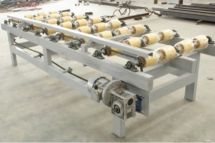 自動輸送板材、采用蝸輪蝸桿減速器+鏈條 驅動、輸送棍子采用改性尼龍制造,抗腐蝕、 高強度。...