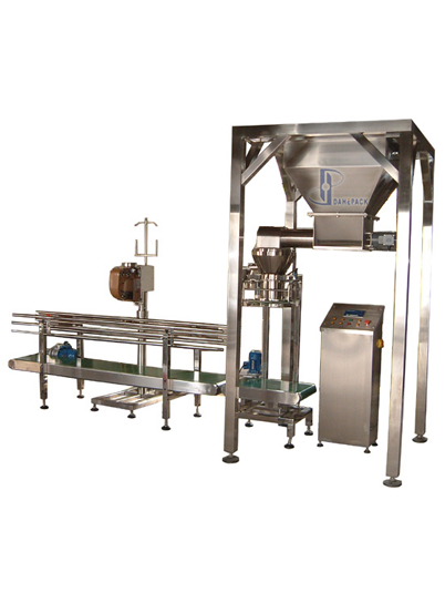 加配皮帶輸送機、縫包機、折邊機或熱合機等可以成為成套包裝系統(tǒng)。