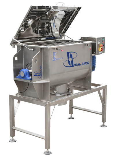 臥式螺帶混合機(jī)由U形容器、螺帶攪拌葉片和傳動(dòng)部件組成;螺帶狀葉片為雙層結(jié)構(gòu),外層螺旋將物料從兩側(cè)向中央?yún)R集,內(nèi)層螺旋將物料從中央向兩側(cè)輸送,形成對(duì)流混合。 螺帶混合機(jī)對(duì)于粘性或有凝聚性的粉粒體的混合以及粉粒體中添加液體及糊狀物料的混合有良好的效果,筒蓋可做成全開式門,以便于對(duì)設(shè)備進(jìn)行清洗更換產(chǎn)品。